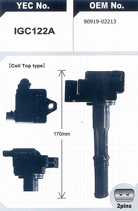 Катушка зажигания / YEC для Toyota Century 1997- GZG50 Paseo 1996- EL44L Tercel EL53L; H=170mm; IGC122A; 9091902213 IGC120A