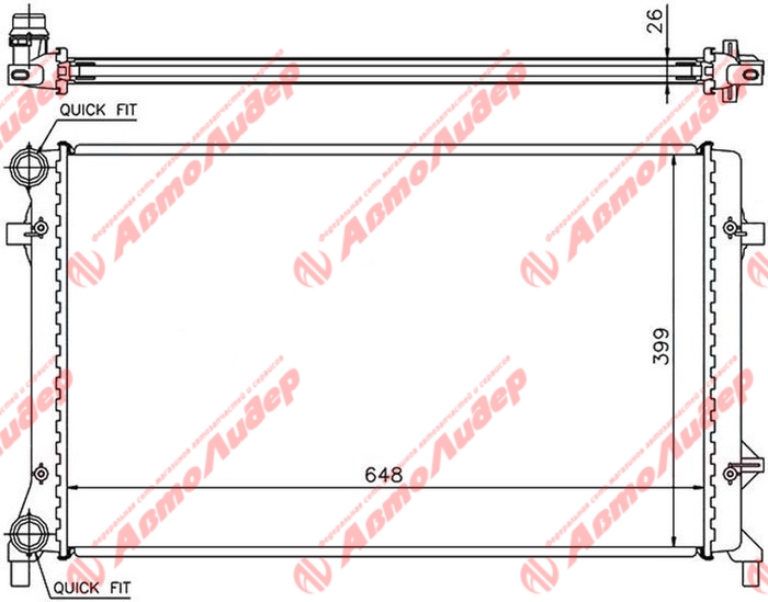 Радиатор охлаждения /AUTOLEADER для Audi A3 S3 2003- Volkswagen Golf V Jetta Caddy 2005- Passat B6 2001-2005 /без крышки; AU-A3-1222; (SGVW0004) 1K0121251CD 1K0121251BR