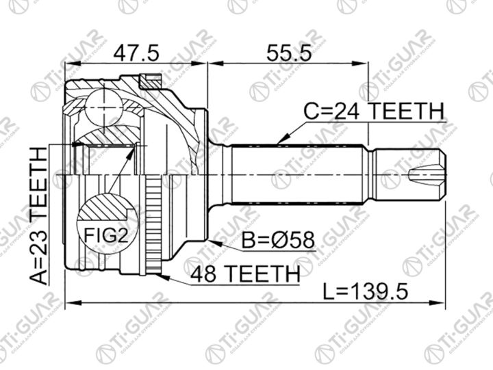 ШРУС наружный /правый /левый /TI-GUAR для Toyota Platz Probox Funcargo Vitz 1999- 1 2NZ; 23*58*24; TG-9535Z48; (TO-E035A AB1207-2H TG9535) 4346059045 0110035A48